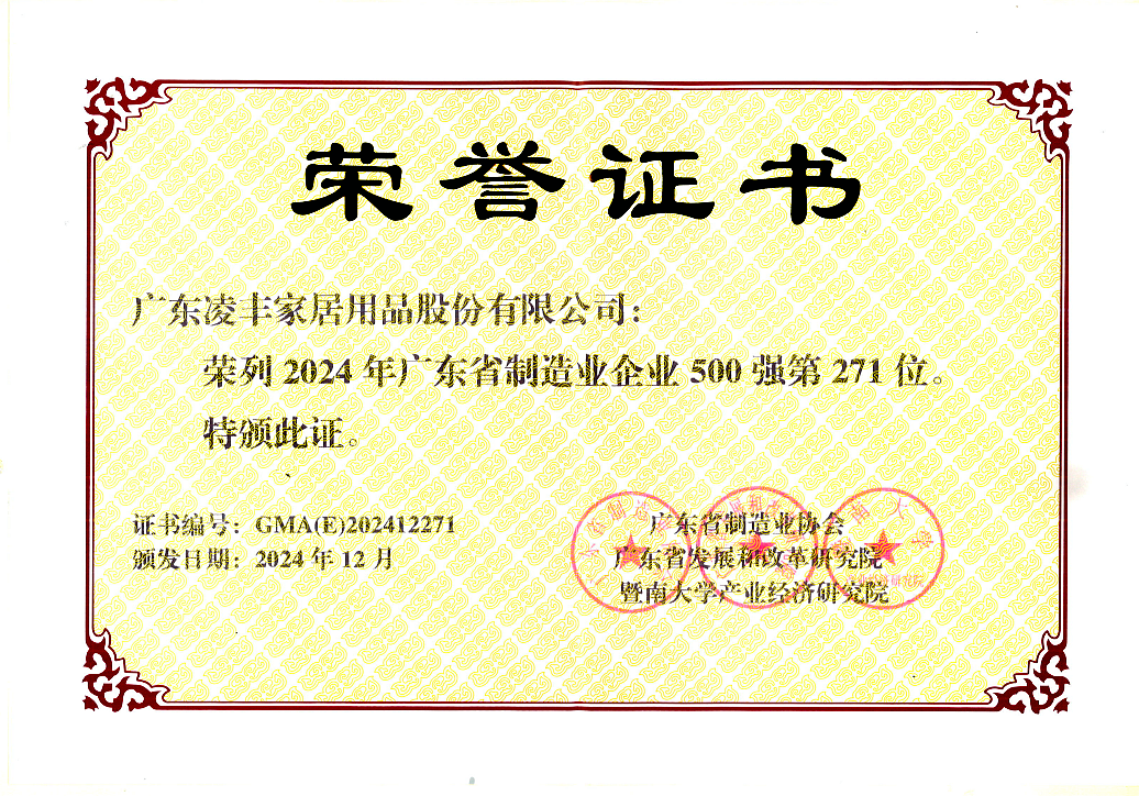 12月3日,在由广东省制造业协会、广东省发展和改革研究院、暨南大学产业经济研究院联合主办的2024广东省制造业500强峰会上,主办方发布了“2024年广东省制造业企业500强”名单。作为全球高端不锈钢餐厨用品主要供应商之一的凌丰家品,再度上榜“广东省制造业企业500强”。这是凌丰家品连续第四年上榜,也是继获得2024年“广东省省级制造业单项冠军企业”后的又一殊荣,体现了社会各界对凌丰家品在智能制造、技术创新、品牌建设等方面综合实力的高度认可。