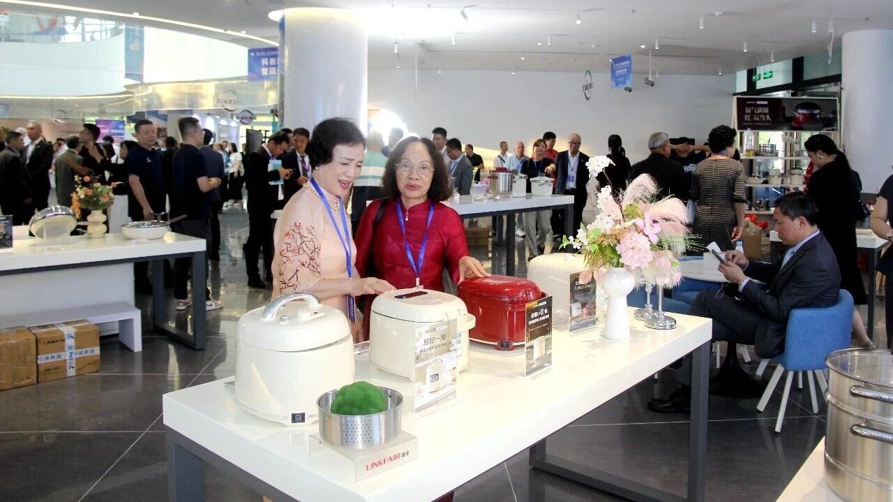 凌丰展位,人潮如织。凌丰品牌携众多创新产品悉数登场,从长期占据多个主流电商平台销量榜前列的玲珑压力锅,到主打轻巧耐用的蓝钛新材料系列锅具和深受年轻消费者追捧的低糖养生0涂层智能电饭锅,还有专门为喜欢户外活动的茶友开发的趣泡茶壶,每一款产品都凝聚了凌丰对厨房生活美学的深刻理解。展位现场咨询、洽谈的客商络绎不绝,当中不乏身穿特色民族服饰的东盟客商,气氛热烈。